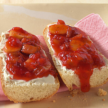 Der Rhabarber sorgt für säuerlichen Touch in der sommerlichen Konfitüre.