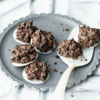 Wenn du die Makronen richtig crunchy magst, zerkleinere die Erdnüsse im Blitzhacker nur grob. Übrigens kannst du auch Cashewnüsse für das Rezept verwenden.