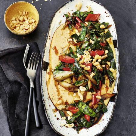 Erdnusspolenta mit Mangold