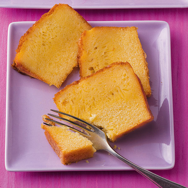 Der glutenfreie Rührkuchen wird nach dem Backen mit Orangensaft getränkt.