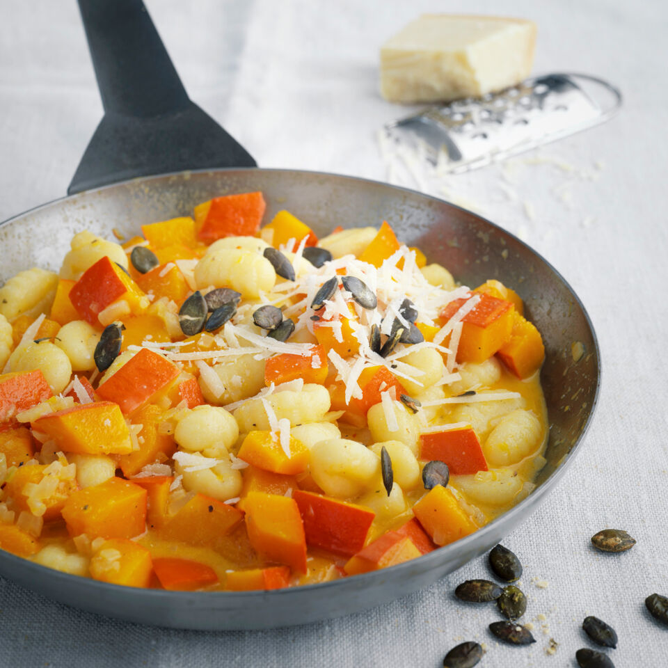 Wer mag, kann natürlich auch andere Kürbissorten ausprobieren. Die Kürbis-Gnocchi schmecken z.B. auch hervorragend mit Butternut- oder Halloween-Kürbis.