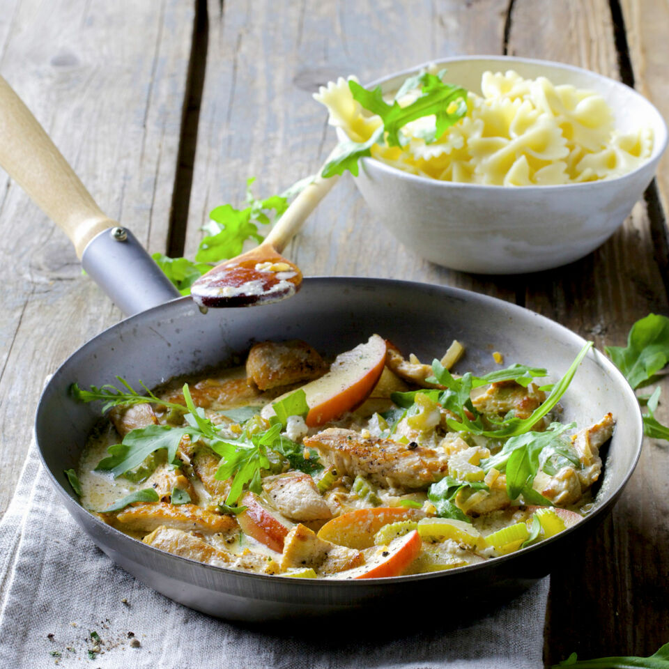 Der Clou an unserer Pastasauce? Die raffinierte Kombination aus Putenbrust und Apfel. Für die gewisse Cremigkeit sorgt Ricotta. Da greifen wir gerne zu!