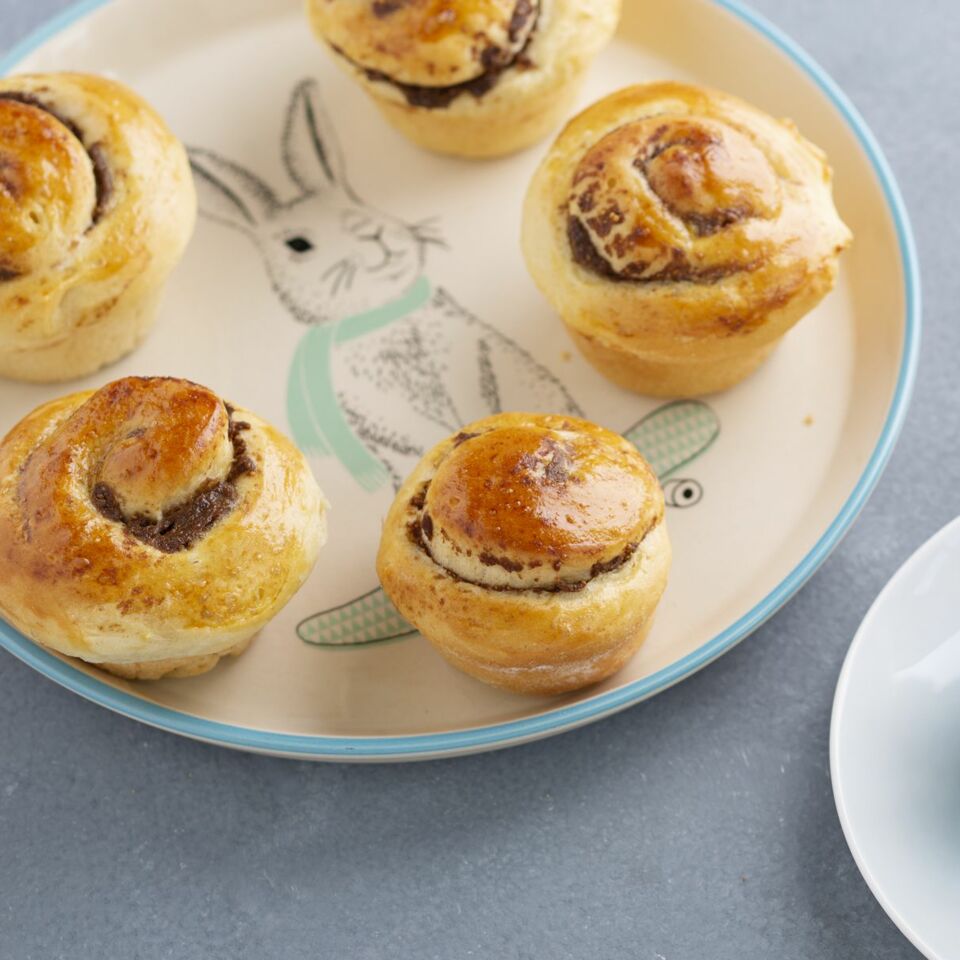 Den Ofen auf 180° Ober- und Unterhitze vorheizen. Das Eigelb mit der restlichen Milch glatt rühren, die Zimtschnecken damit bepinseln und für ca. 20 Min. im Ofen (Mitte) goldbraun backen.