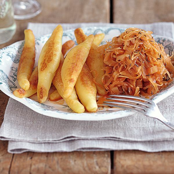 Beste Bauernküche: Ganz klassisch wird Sauerkraut zu den Fingernudeln serviert, sie sind aber auch zu einem gemischten Salat sehr lecker.