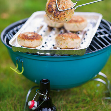 Den Grill vorheizen. Aus der Masse 8 Frikadellen formen. Grillschale mit Öl bepinseln und auf den heißen Rost legen. Die Frikadellen mit Öl bepinseln und in der Schale bei mittlerer Hitze von beiden Seiten je 4 - 6 Min. grillen. Frikadellen mit Papaya-Chili-Dip (siehe Rezept-Tipp) genießen.