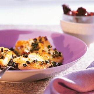 Die Butter in einer Pfanne aufschäumen und leicht bräunen. Die Fischfilets darin bei mittlerer Hitze auf jeder Seite etwa 2 Min. braten. Die restliche Kapernmischung in die Butter rühren. Die Filets auf vorgewärmten Tellern mit der Sauce servieren.