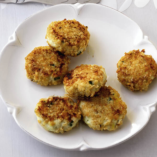 Aus der Masse kleine Buletten formen und in den Haferflocken wenden. Das Öl in einer Pfanne heiß werden lassen, die Puffer darin bei mittlerer Hitze etwa 5 Min. braten, dann wenden und in etwa 5 Min. fertigbraten.