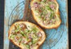 Statt mit einfacher Crème fraîche wird dieser knusprige Flammkuchen mit einer würzigen Ziegenkäse-Walnuss-Creme bestrichen.