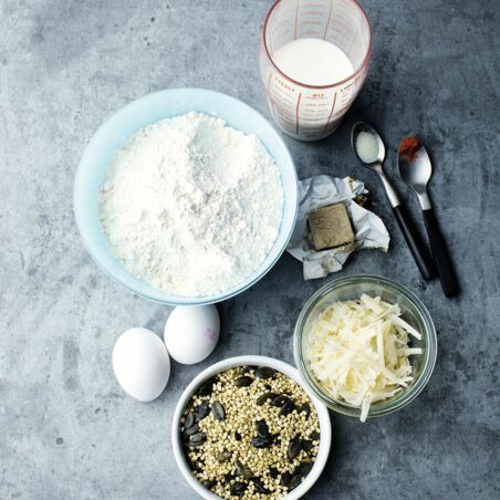 | ca. 2 EL | Geschmackgeber (z. B. Parmesan oder Saaten) |