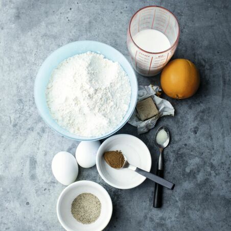 | 370 g | helles Mehl (z. B. Weizenmehl Type 405 oder 550, Dinkelmehl Type 630) |