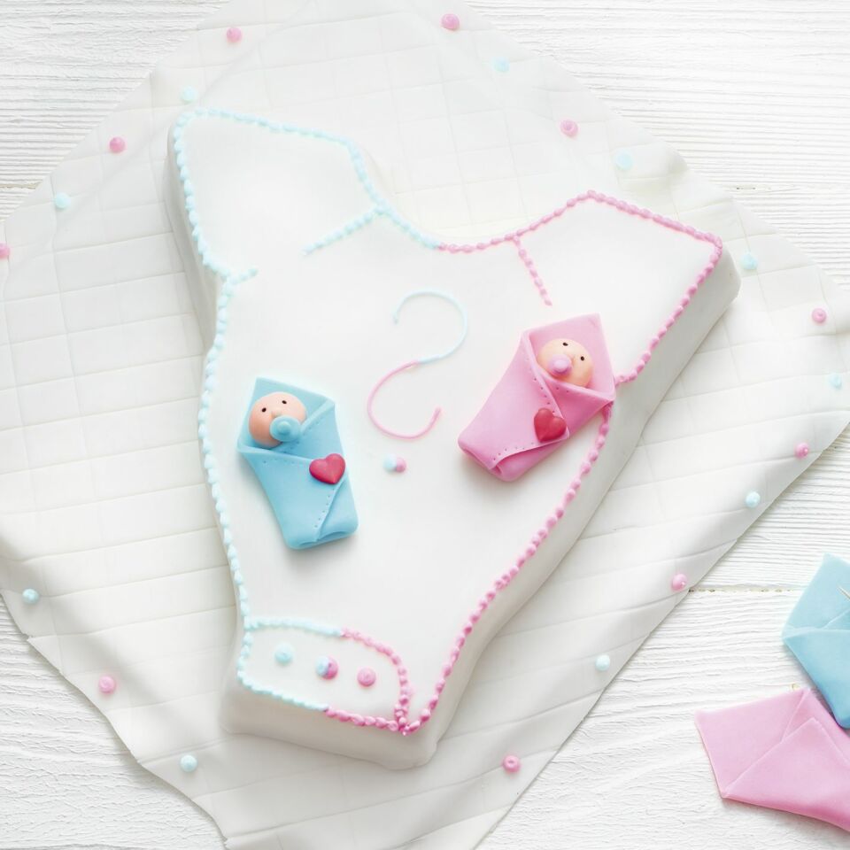 Junge oder Mädchen, Max oder Maxi? Die Buttercreme unserer Motivtorte verrät es deinen Gästen! Eine klasse Idee für die nächste Babyparty.