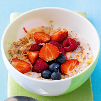 Wer eine Getreidemühle hat, kann sich diesen Frischkornbrei zubereiten. Das Obst kann der Saison entsprechend gewählt werden.