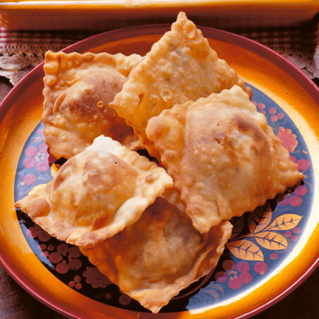 In einer tiefen Pfanne gut 1 cm hoch Schweineschmalz erhitzen. Die Teigtaschen portionsweise auf beiden Seiten in je ca. 5 Min. hellbraun braten. Auf Küchenpapier abtropfen lassen. Heiß servieren.