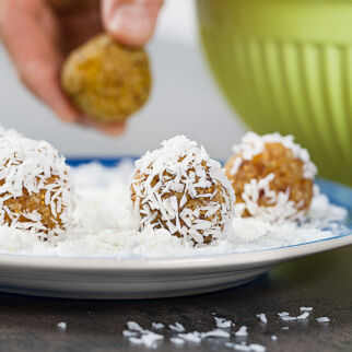 Für die Zubereitung der kleinen Powerkugeln benötigt man unbedingt einen Fleischwolf oder Powermixer. Dann werden sie richtig zart und fein.