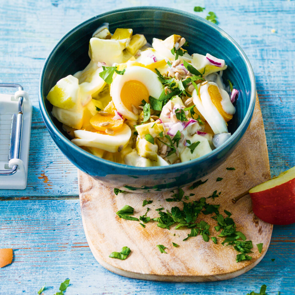 Abgekühlte Eier pellen, in Scheiben schneiden und ebenfalls behutsam unterheben. Eiersalat mit Sonnenblumenkernen und Petersilie bestreut servieren. Mit Kernigem Eiweißbrot oder Eiweiß-Möhren-Brot (beide Seite 60) genießen.