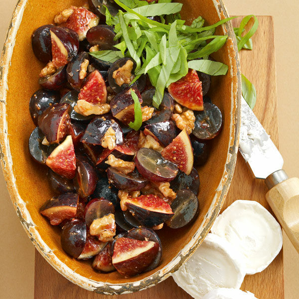 Feigen, Weintrauben und Walnusskerne sind die Hauptzutaten dieses Salats, der mit gebackenem Ziegenkäse serviert wird. Ein edler Auftakt eines Festessens ...