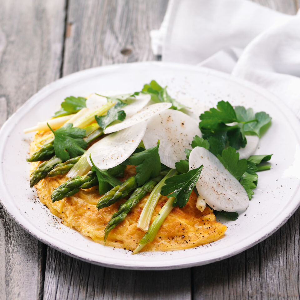 Frühlingsomelett mit grünem Spargel