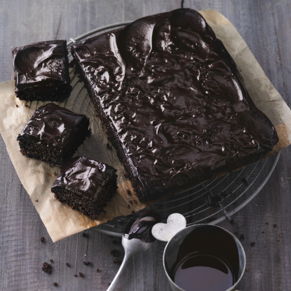 Für die Glasur 60 g Kokosöl zerlassen. Das restliche Kakaopulver (60 g) mit dem flüssigen Kokosöl und dem Ahornsirup in einer kleinen Schüssel glatt verrühren. Die Brownies mit der Schokoglasur bestreichen und die Glasur fest werden lassen. Dann in 8 Stücke schneiden.
