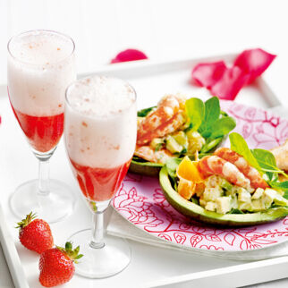 Den restlichen Zitronensaft mit dem Rapsöl, Salz, Pfeffer und Paprikapulver verrühren. Die Tomaten, Schnittlauch, Garnelen und die Avocado mit der Sauce vermengen, abschmecken und servieren.