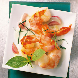 Geschälte Garnelen sind in der Pfanne im Nu gar und machen viel her. Rosmarin und Tomaten machen aus ihnen ein mediterranes Gericht.