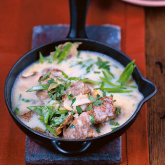 Den Reis offen 5 Min. ausdampfen lassen, vor dem Servieren mit Salz, Pfeffer und Sojasauce abschmecken.
