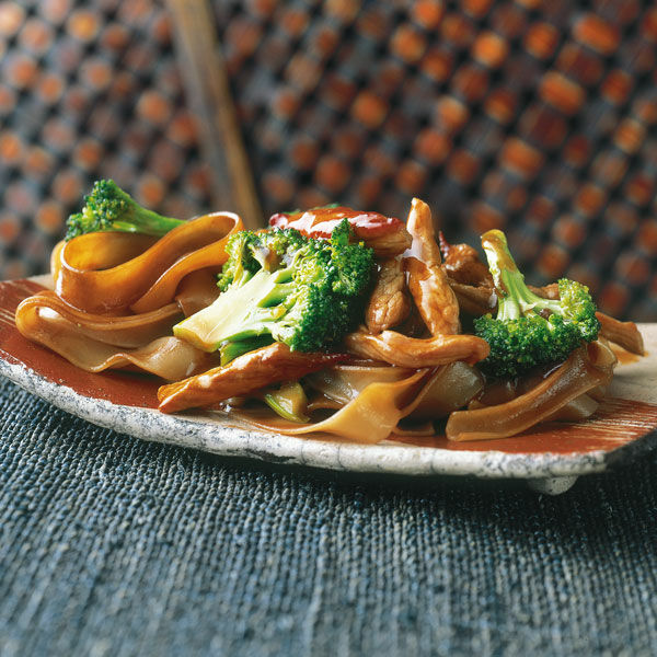 Gebratene Nudeln mit Schweinefilet und Brokkoli