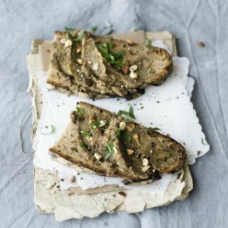 Die Steinpilze putzen und, falls nötig, mit einem feuchten Tuch vorsichtig abreiben. Den Sand bzw. die Schmutzreste an den Stielen mit einem kleinen Messer oder einer Bürste abschaben. Die Steinpilze in dicke Scheiben schneiden.