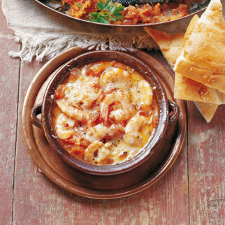 Die Zwiebeln und den Knoblauch schälen und klein würfeln. Die Stielansätze der Tomaten entfernen. Die Tomaten kurz überbrühen, häuten, in Scheiben schneiden. Petersilie waschen, trockenschütteln und die Blättchen hacken. Den Backofen auf 180° vorheizen.