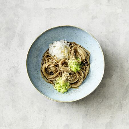 Die perfekte Asia Bowl für den Sommer: mit Soba-Nudeln, Rettich, Sesam und eisgekühltem Dressing.