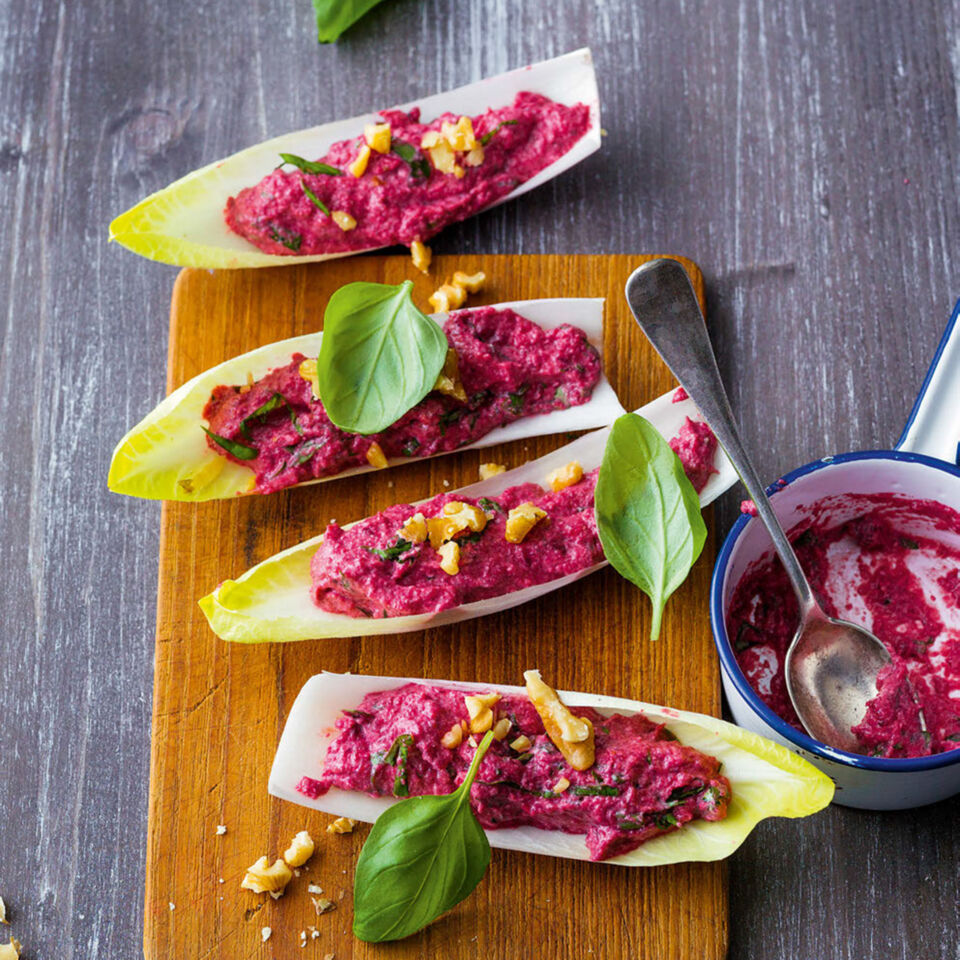 Gefüllte Chicoréeschiffchen mit Rote-Bete-Schafskäse-Creme