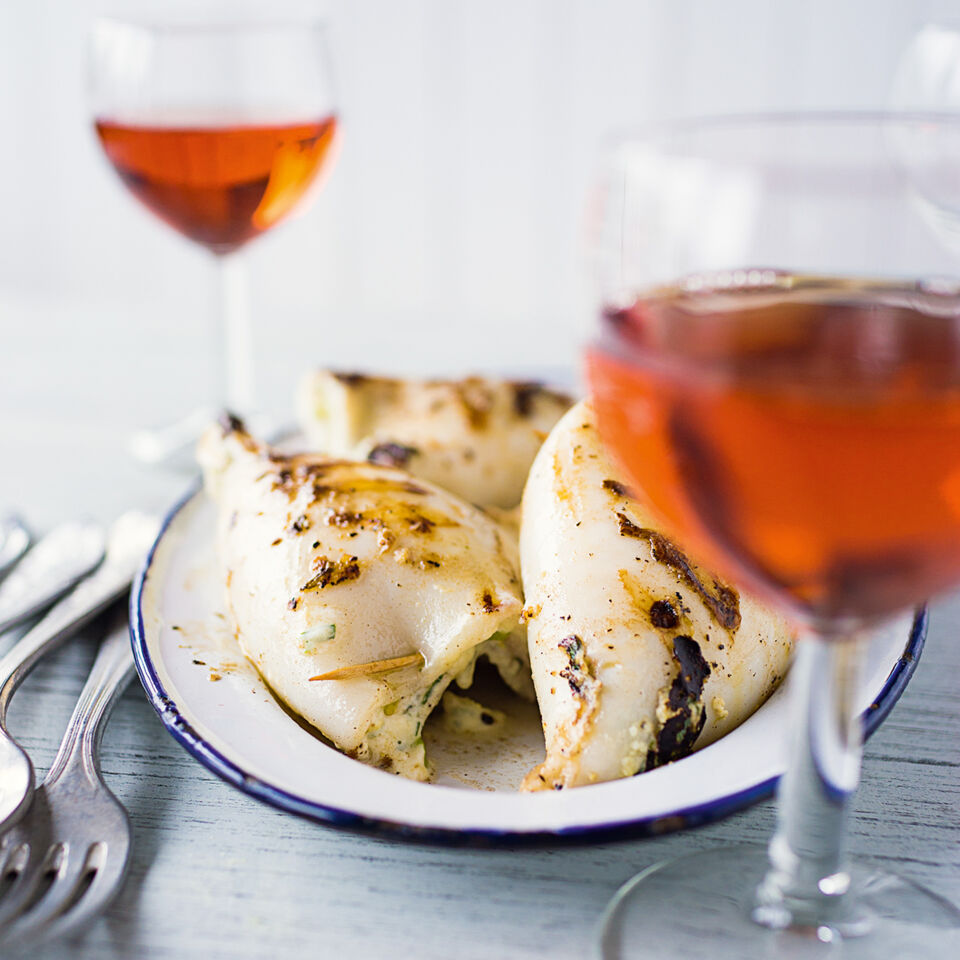 Kalamari brauchen Röstaromen. Deshalb schmecken sie vom Grill so wunderbar. Die cremig-kräuterfrische Füllung macht sie unwiderstehlich.