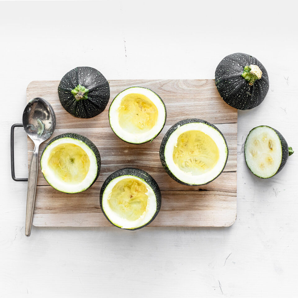 Anstelle der Kugelzucchini kann man auch die üblichen länglichen Früchte füllen.