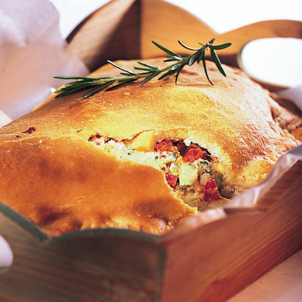 Mehl mit Salz und Olivenöl in einer Schüssel mischen. Die Hefe zerkrümeln, in 100 ml lauwarmem Wasser verrühren und unter das Mehl mischen. Alles auf die Arbeitsfläche umladen und kräftig durchkneten. In die Schüssel zurück, zudecken und 1 Stunde lang aufgehen lassen. Der Teig sollte ungefähr doppelt so groß werden.