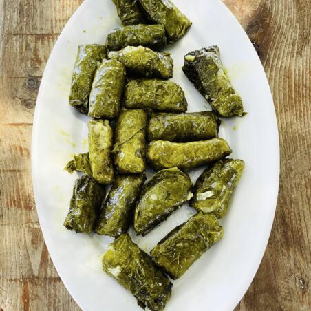 | 300 g | eingelegte Weinblätter (Glas oder vakuumverpackt) |