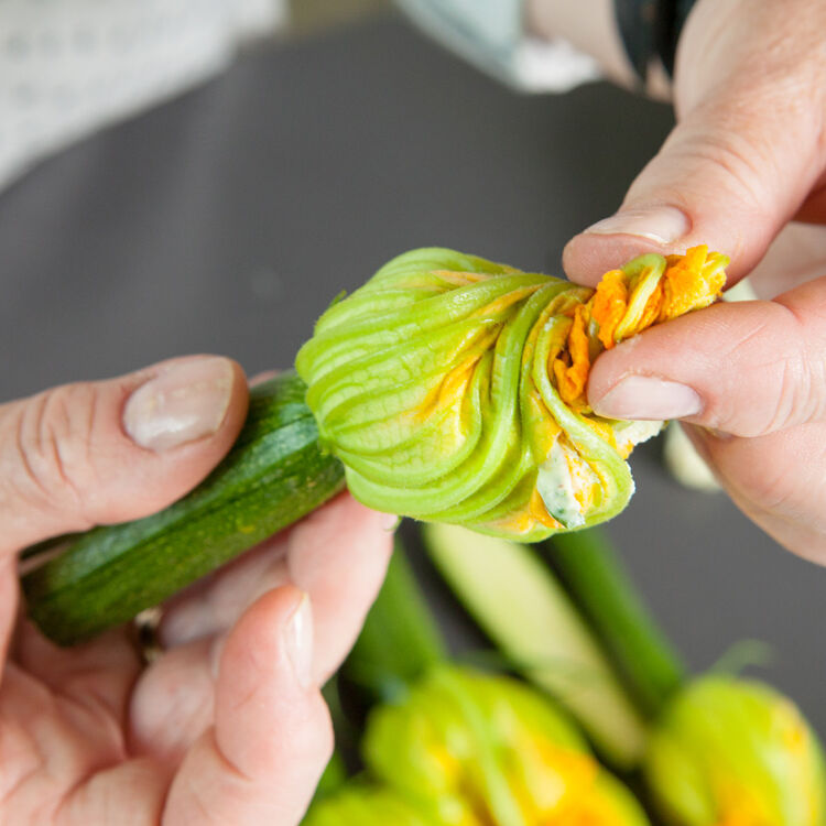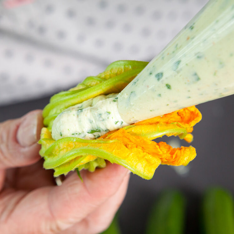Gefüllte Zucchiniblüten mit Ricotta-Basilikum-Creme