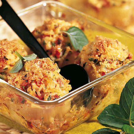 Winterlich würzig! Natürlich schmecken die üppig mit Tomatenreis und Käse gefüllten Zwiebeln rund ums Jahr. Aber: Winterzwiebeln sind milder im Aroma!