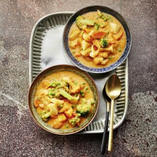 | 600 g | gemischtes Gemüse (z. B. Kartoffeln, Möhren, Blumenkohl, Kürbis, Paprika, grüne Bohnen) |