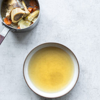 Diese Gemüsebrühe ist die perfekte Ergänzung für Ramen. Sie lässt sich aber auch prima einfrieren, z. B. in Form von Eiswürfeln, die man bei Bedarf portionsweise auf die Schnelle zum Würzen verwenden kann.