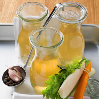Selbst gekochter Fond ist besser und auch billiger als gekaufter. Am besten gleich einen Vorrat anlegen!