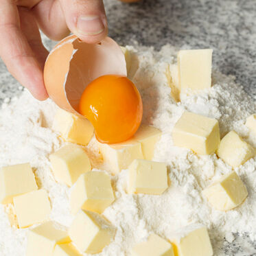 Mehl, Zucker und 1 Prise Salz mischen. Butter in Würfel schneiden, mit dem Eigelb zufügen.