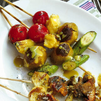 Gemüsespieße mit Tempeh