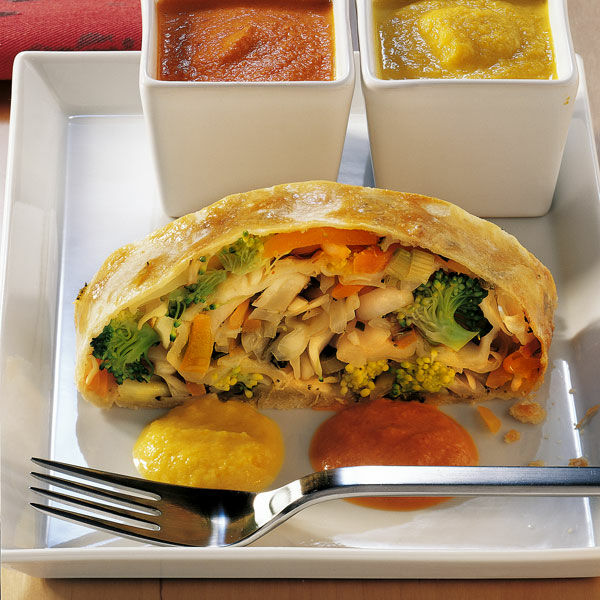 Gemüsestrudel mit Paprikasauce