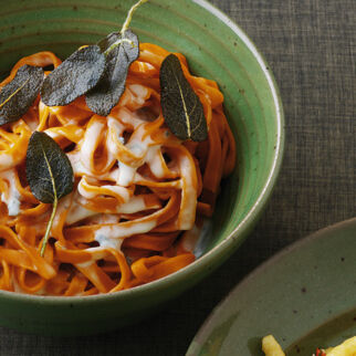 Einen Topf mit Salzwasser aufsetzen. Wenn es kocht, die Nudeln dazugeben und nach Packungsanweisung bissfest garen.