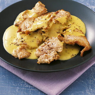 Die Senfsahne passt nicht nur zu Putenbrust. Hähnchenbrust, Schwein und Kalb fühlen sich darin genauso wohl.