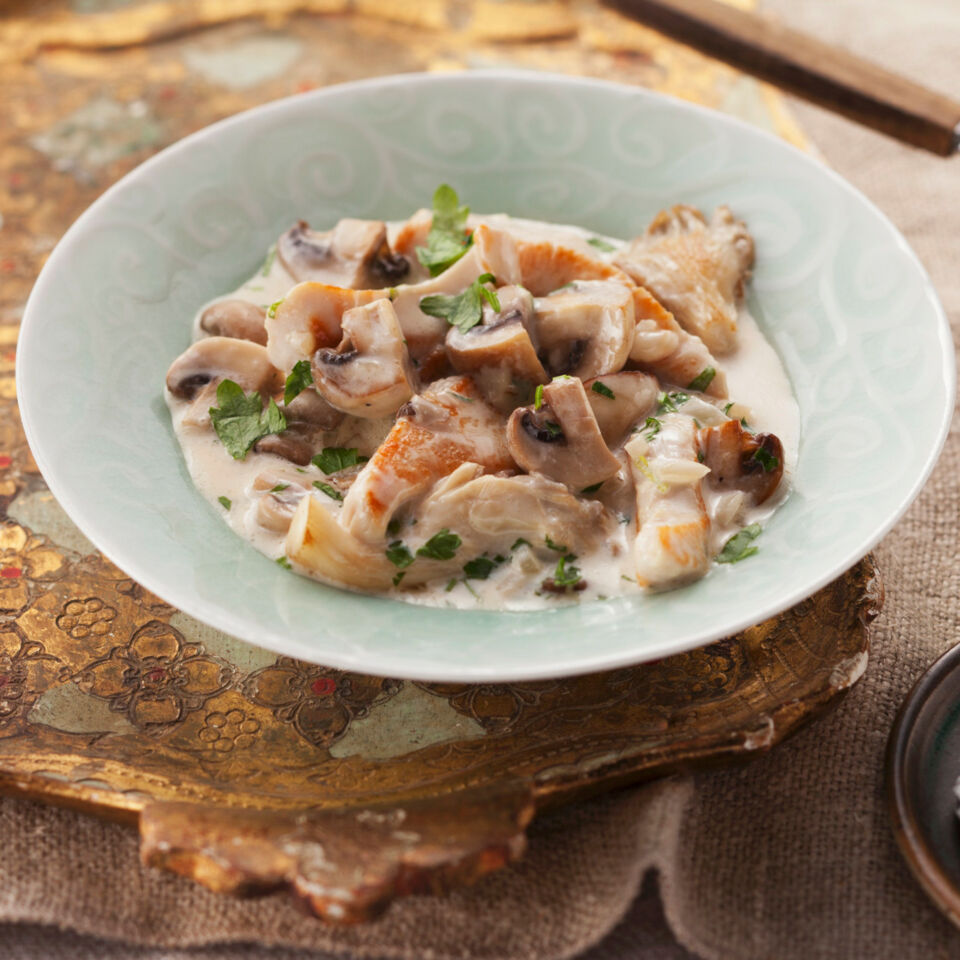 Das Putengeschnetzelte landet ratzfatz auf dem Teller. Als Beilage präsentiert sich hier mal ein Klassiker im neuen Gewand.
