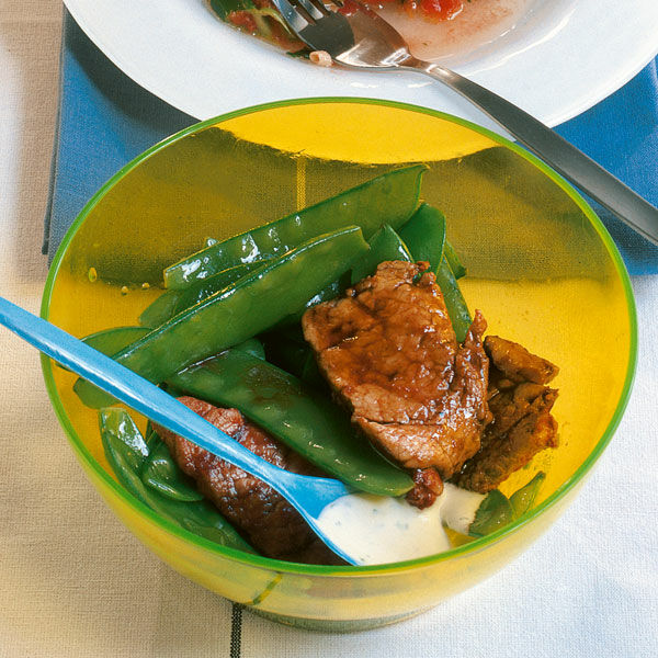 Geschnetzeltes mit Zuckerschoten aus der Mikrowelle
