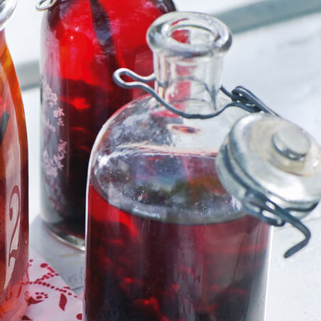 Beeren und Kandis müssen über Nacht durchziehen und der fertige Likör sollte vor dem Genuss mindestens 4 Monate an einem hellen Ort ziehen.