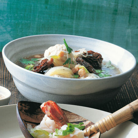Dieses feine Thai-Süppchen mit Glasnudeln, Fleischbällchen und Morcheln wird Ihre Gäste begeistern!