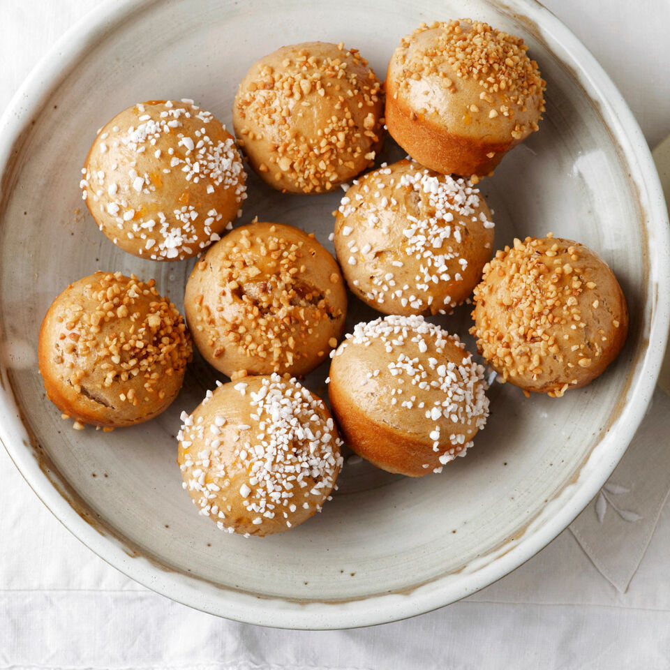 | 100 g | Haselnusskrokant, Hagelzucker oder Kokosraspel zum Bestreuen |