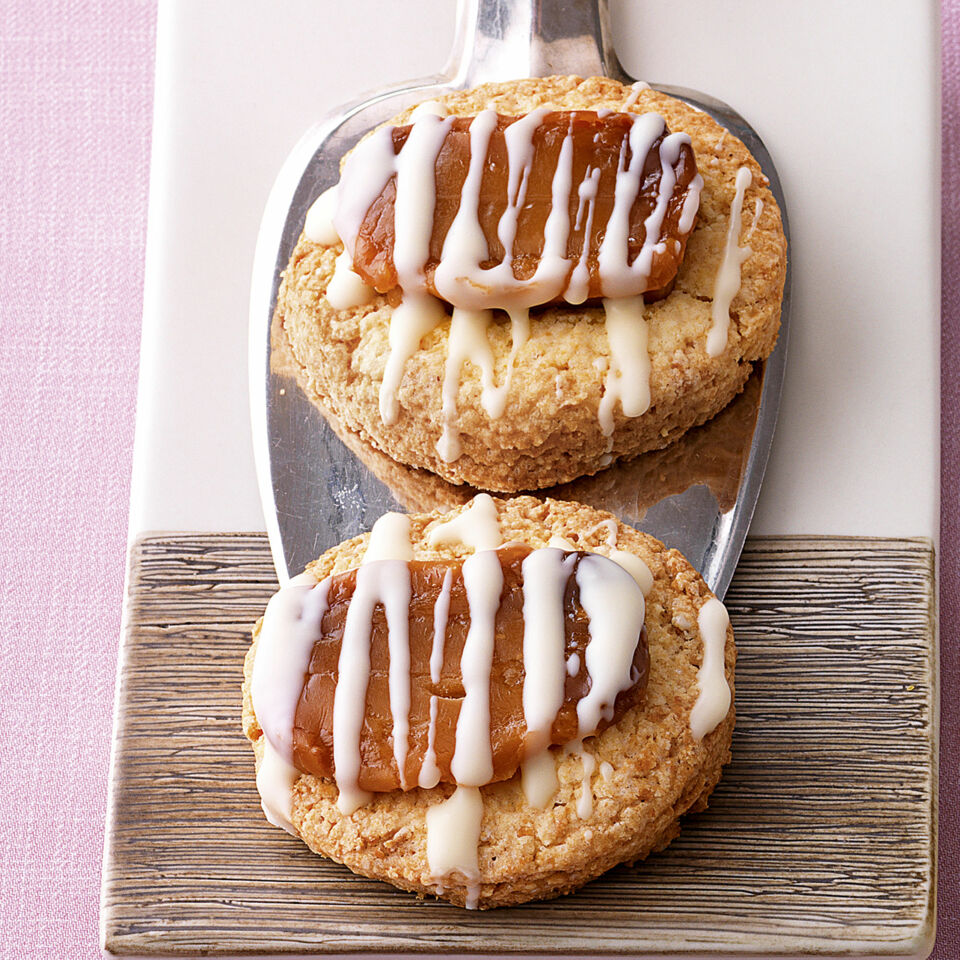Diese glutenfreien Kekse sind eine wahre Versuchung. Auf jedem Mürbteigtaler gibt es einen geschmolzenen Karamellbonbon.